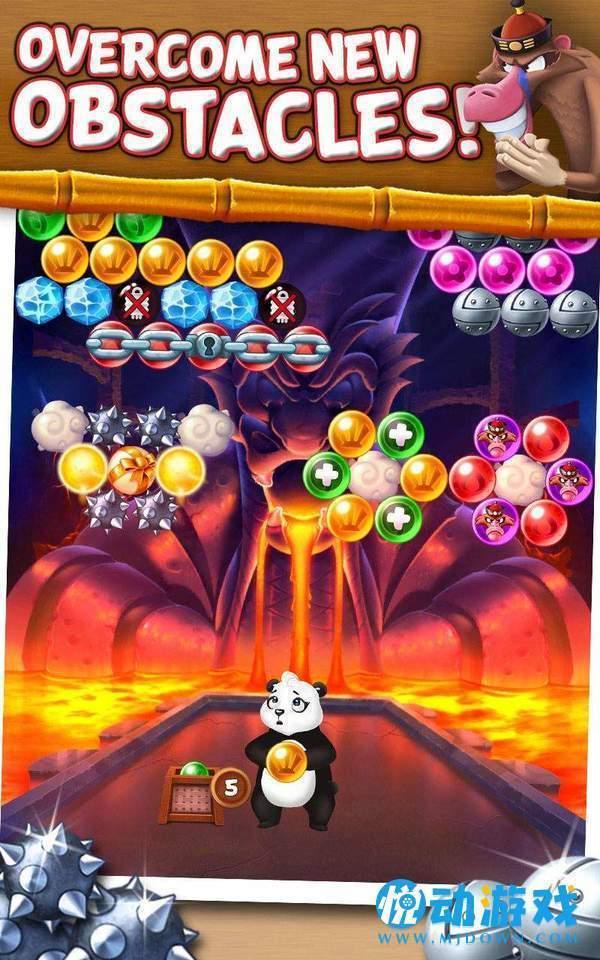 有一天,一只邪恶的狒狒绑架了你的孩子们,作为一只熊猫妈妈,你需要拿起手中的泡泡拯救你的孩子们,通过消除同色的泡泡来将小熊猫从笼子里救出来,。