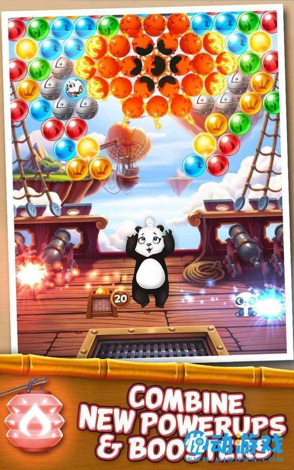 熊猫泡泡龙是一款可玩性高的消除类手机游戏。这款熊猫泡泡龙游戏画面的色彩是十分的丰富好看这个游戏是因为你的熊宝宝被抢走了游戏基本上是跟泡泡龙游戏玩法一致,消除同色的泡泡,丰富的剧情,拯救被困小熊猫。