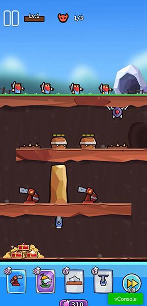 在这个游戏中,必须设置很多的障碍物和机关,以阻止小偷们去洞穴里偷窃珠宝。