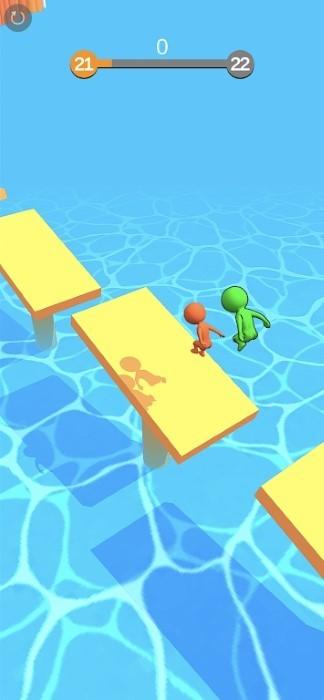 欧比跑酷游戏中玩家的角色化身为挡水平台上的橡胶人。街区之间有一定的距离。玩家可以观察区块之间的距离,然后在角色的操作中以适当的力量跳跃,最终到达终点。