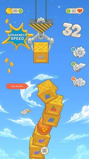 《搬运大师》是一款简单有趣的休闲小游戏,在游戏中年将要把箱子吊起来堆积成一座塔,堆得越高分数越高哦,当然堆积的过程不会那么容易的,游戏过程中会有风刮过你堆积的塔,这会让你的塔有掉下来的危险,这就要考验你的反应能力了。
