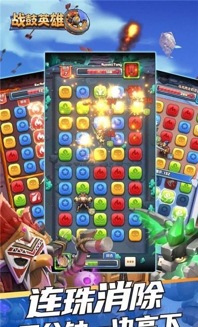 《战鼓英雄》是一款结合了消除与竞技玩法的一款手游。在游戏中玩家需要通过消除方块来进行进攻,不同颜色的方块有着不同的效果,合理的消除才能发挥每一位英雄应有的战斗力。特色连续消除玩法,将相邻的方块一口气全消除,爆发超高上海,将对手击败,成为最强的消除策略王者!你还在等什么?快来挑战一下吧!