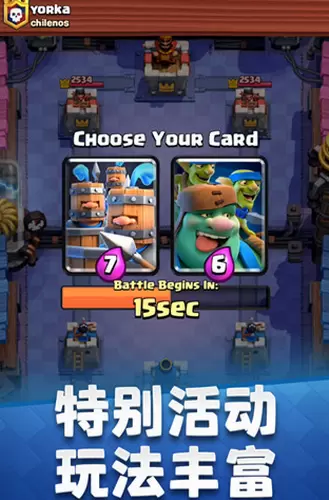 (c).赶快进入竞技场!部落冲突的开发商为您带来了一款实时多人游戏,其主要角色包括皇室成员以及您喜爱的部落冲突中的角色。