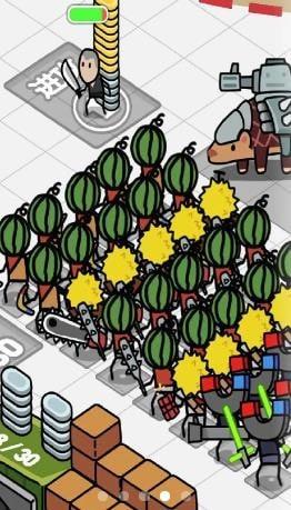 d.在游戏中玩家可以种植各种西瓜小兵,对抗敌人,主角外貌很像华强,总体来说搞笑风格
