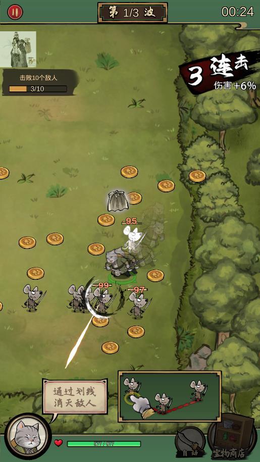 1.国风水墨肉鸽冒险游戏,控制猫咪灵活走位,完成各种任务挑战,解锁更多冒险;