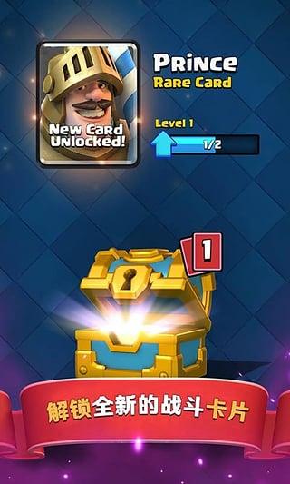 b.摧毁敌军塔获得王冠,获得史诗王冠宝箱创建和升级卡片集合,包括皇室成员和来自。