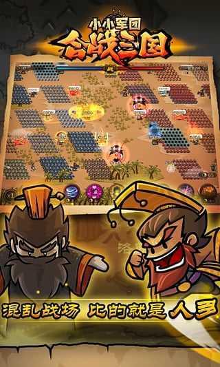 不是千人对战,场面根本不够看!真正战场,有兵有将打得才欢!幽默逗趣的三国角色,手机上的“全面战争”!25vs25将领对垒,2000个迷你士兵同屏激战!史上人数最多的军团大战,就是要爽要震撼;