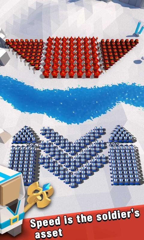 1、在这款游戏中玩家要不断的去进行战斗的,不断的将各种不同的兵种安排在阵容中,去和红色阵营在不同的场景中进行战斗;