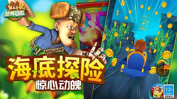 熊出没4丛林冒险最新修改版是一款超好玩的跑酷类休闲手游,这款游戏根据经典动漫熊出没改编而来,极具趣味性的游戏玩法,带给玩家别样的游戏体验,超精彩的跑酷内容让你爽到不行。小伙伴们,快来和熊大熊二两兄弟一起踏入全新的冒险之旅吧,无数玩家翘首以盼的《熊出没4丛林冒险》闪亮登场,打造奇趣冒险体验,神秘的海底探险和多变的机关玩法让你全程惊奇无比;各种新奇的关卡障碍,鱼群、巨石、齿轮、火球,各种各样的障碍物层出不穷,变幻莫测的游戏场景让你充满新鲜感,怎么都玩不腻。