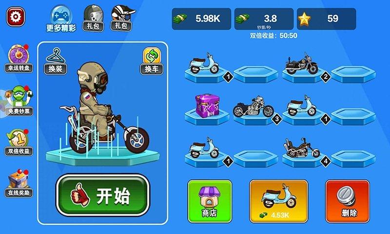c.从越野摩托车模型中选择你喜欢的模型,开始冒险,完成挑战。