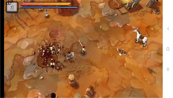 (2).吸血:如果手指点在屏幕上向某一方向快速滑动,而且该方向有敌人非BOSS,角色就会发动绝杀技,瞬间杀死该名敌人并回复一定的血量,会消耗大量耐力。