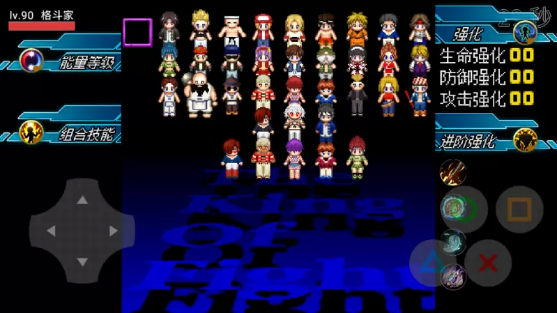 1、复古风的游戏界面,诸多英雄级角色相对高度复原,陪你重温童年玩拳皇的热情激情。