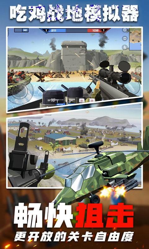 吃鸡战地模拟器以第一人称视角进行,玩家可以收集资源和武器一起战斗。丰富有趣的游戏玩法,各种不同的待遇等着你去体验。在此游戏中建有菜单,无限子弹,无限枪支,无后坐力,为玩家带来全新的游戏体验。适合不同年龄段的用户,享受美味爽口的吃鸡魅力。感兴趣的小伙伴赶快下载最新的游戏版本吧(๑•̀ㅂ•́)و✧~