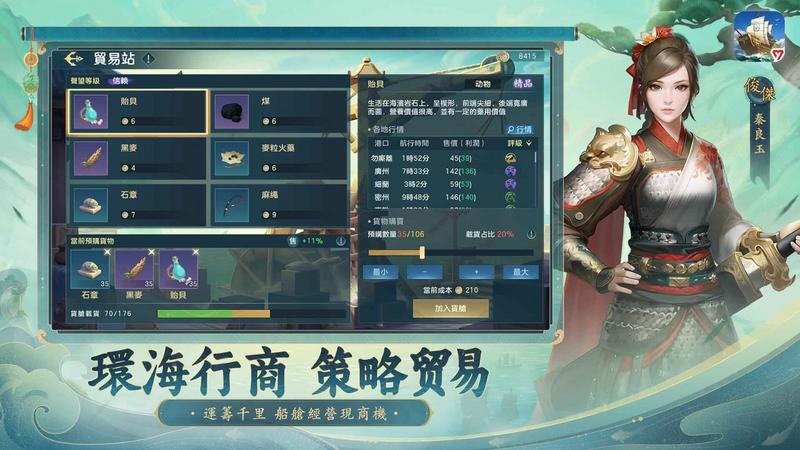真实而熟悉的商贸物品,充满特点的地域器具,其价格随各地行情而动、随港口声望等级而起。