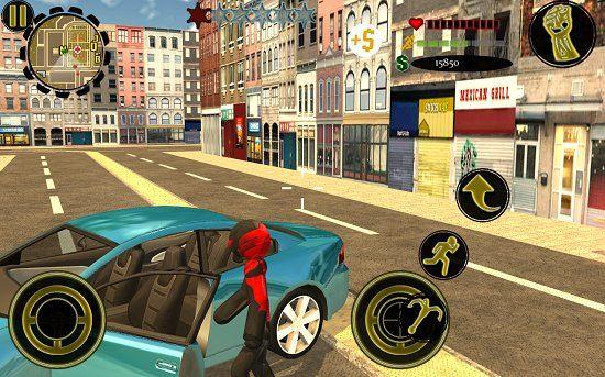 左侧移动、加速,右侧绳索,攻击(跳跃),跳跃,右上侧的武器更换以及血量、经验的显示都实时更新,一览无遗,凭借着大家自由的玩法,与其他帮派的人物进行交火,期间杀人能够获得经验,杀多了会产生星级,警察和其他附近角色会特殊照顾你对你展开火热的进攻,而如何存活,如何将其他人物击杀则是你所需要完成的任务。