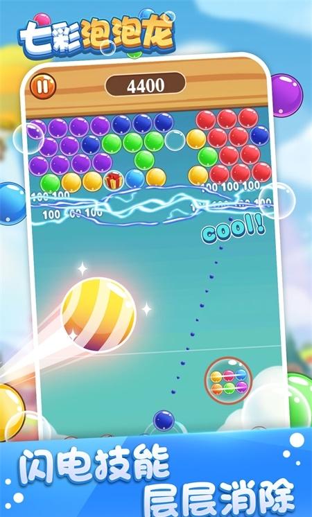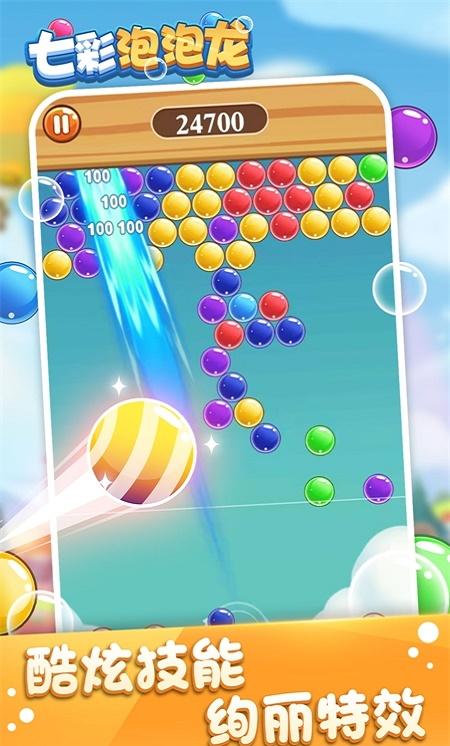 七彩泡泡龙是一款好玩的休闲类的游戏,消除相同的泡泡,可以大面积扩散,开启超级清除模式,超解压消除。