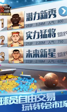 篮球经理手游是一款可以满足许多玩家们篮球梦的另一种方式的游戏,玩家们可以在这款游戏中经营自己的篮球俱乐部,然后不断培养好自己的篮球运动员们,让他们在篮球场上为自己赢得一次次胜利,当然随之而来的还有非常多的荣誉和利润,是一款非常好玩的游戏。