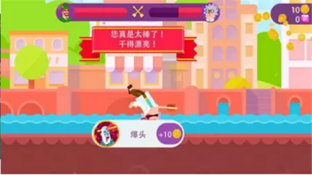 3、在每一关开始的时候我们都可以看到对阵的两个人,并且由于每个人的武器都是不一样的,在游戏中玩家们需要能够很好地去根据那些角色的不同来选择不同的攻击方法,以及正确的技巧。