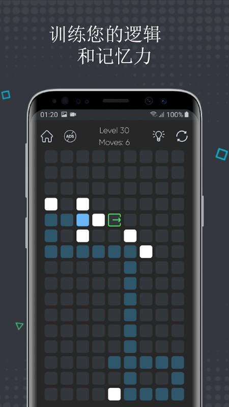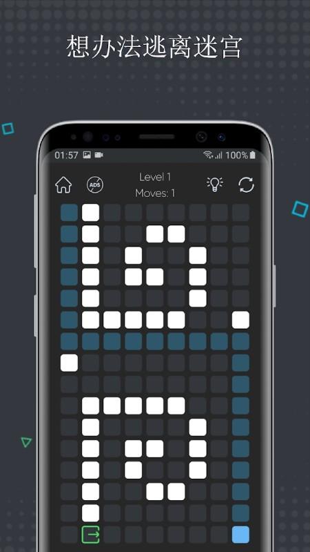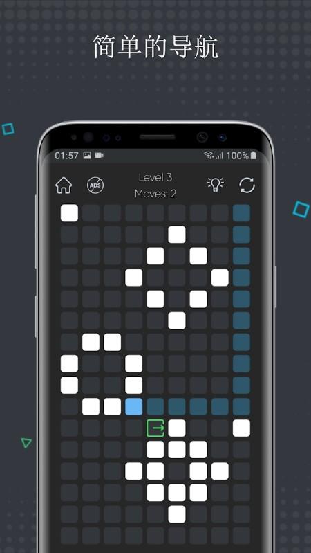 (2).简单的导航:向上、向下、向左或向右滑动可将方块移动到出口处;