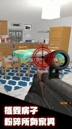 (c).拆家模拟器游戏玩法简易,你需要做的便是操纵射击,根据瘋狂的射击将出現在你眼前的物件所有摧毁;