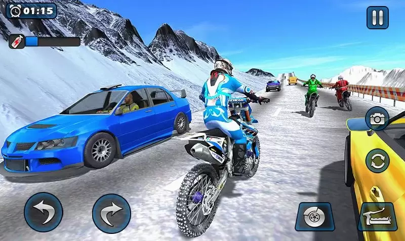 骑你的雪地摩托,快速驾驶,以追逐其他自行车骑手在这个极端的雪地赛车游戏