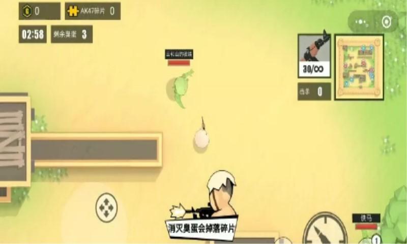 (b).大量的臭蛋病毒入侵了蛋壳村,很多蛋壳已经被感染,你需要拿起手中的武器拯救幸存者。