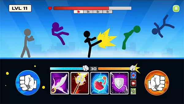 火柴人战士超级战斗StickmanFighterMegaBrawl是一款火柴人街机动作格斗游戏,选择你的火柴人战士,参与刺激的格斗对战。在游戏中,你可以尝试使用各种技能,大规模武器、特殊技术、魔法咒语来进行战斗,享受史诗般的战斗体验。