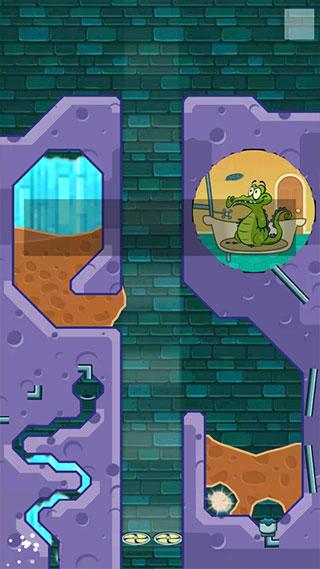 在大多数关卡中,玩家垂直向下拖动,一直拖动的话能看到一个小鳄鱼在下面游荡。