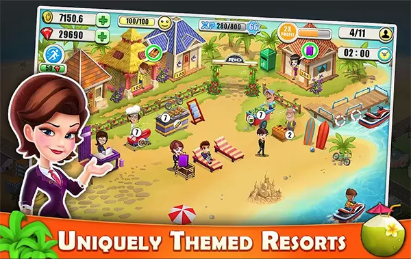 度假村大亨是一款精美的度假村模拟游戏,可测试您的时间和资源管理技能