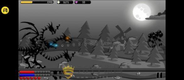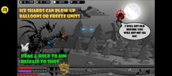 (2).整个游戏的画风比较的偏黑暗,操控着恐龙来进行与火柴人进行对战,发射一道道的激光,准确的击中火柴人,成功的消灭所有的目标。