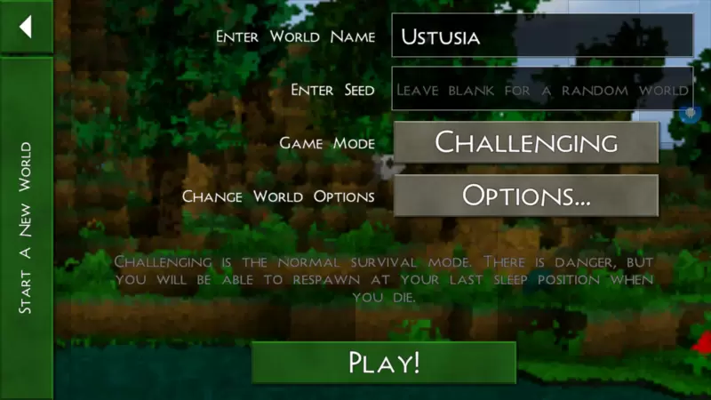 B.无害模式:掉落伤害降低,血量恢复快,挖掘速度提高%,除非你攻击动物,否则动物不会攻击,本质上与挑战模式相同。