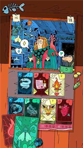 3、玩家需要使用代表不同元素的卡片组合成各种魔法产品。