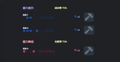 (二).点另一条铭刻的第一下如果成功了,概率会掉到35%我们就选择点负面铭刻,
