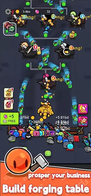 在游戏中玩家需要经营一家史莱姆武器工厂,锻造各种类型的武器,出售这些武器,获得金币来扩大工厂规模,一步步成为武器锻造大师。