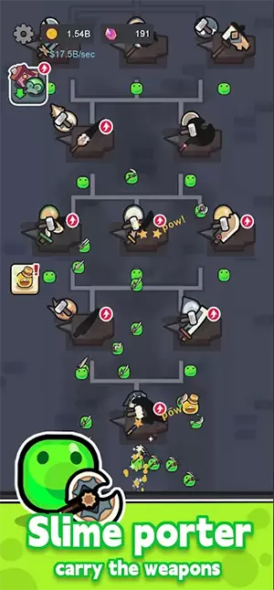 史莱姆武器大师SlimeWeaponMaster是一款武器工厂模拟游戏,成为史莱姆武器大师,你的使命就是制造尽可能多的武器。从一个小锻造台开始,制造并销售尽可能多的武器,引领工厂的发展,赚取足够多的金币来扩大武器的生产规模。