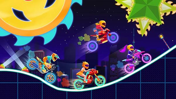 霓虹摩托车MotoBikeNeon是一款刺激的2D摩托车竞速驾驶游戏,加入游戏,开始你的霓虹赛车之旅。游戏中,玩家需要应对一系列摩托驾驶挑战,选择越野摩托车进行极限摩托车比赛,展现疯狂的技巧并赢得最终胜利。