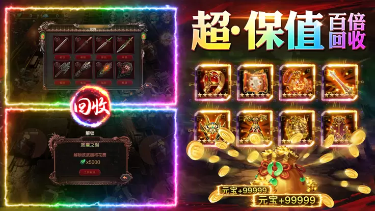b.上线攻速直接拉满,随时都能加入到刷怪打金的战斗,整体的掉落率相当的高,再创你的辉煌传奇。