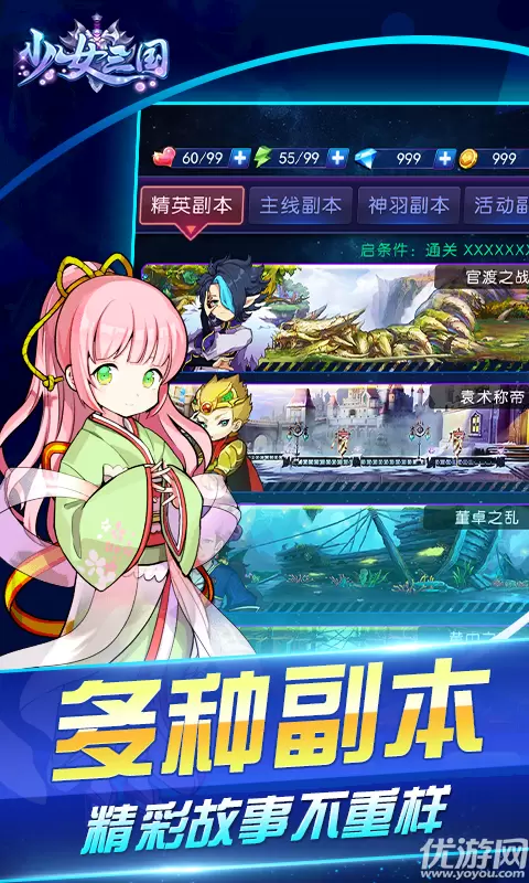 (2).想要体验三国时期的风云人物,又想要欣赏可爱的少女角色吗?那就快来试试少女三国吧!这款游戏玩法丰富,画面精美,非常值得一玩。