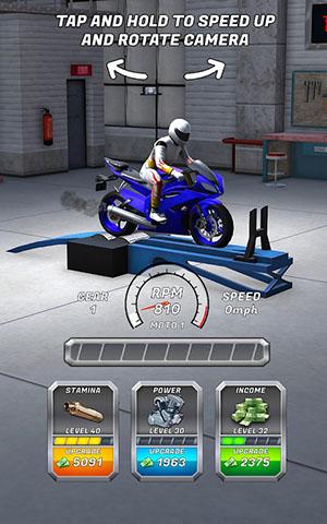 主菜单包含您自己的摩托车,通过点击旋转车轮可以赚钱