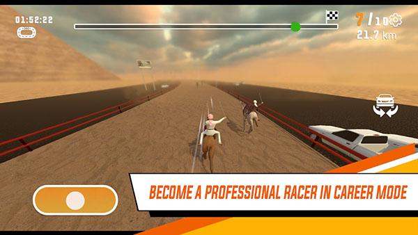 欢迎各种熟练程度的赛车手,直观的控制确保无缝进入激动人心的骆驼比赛世界