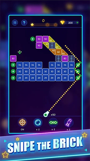 玩法轻松简单,适合用来消磨时光。玩法很简单,滑动来寻找最佳的位置和角度,发射并打碎所有砖块,感兴趣的朋友赶快下载试试吧
