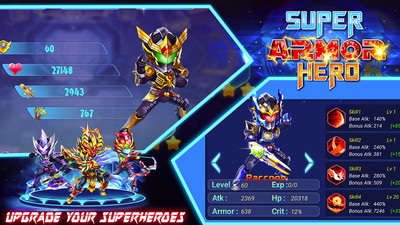 4、玩家可以在游戏中选择不同的铠甲战士,不同的角色带来不同的属性和技能。