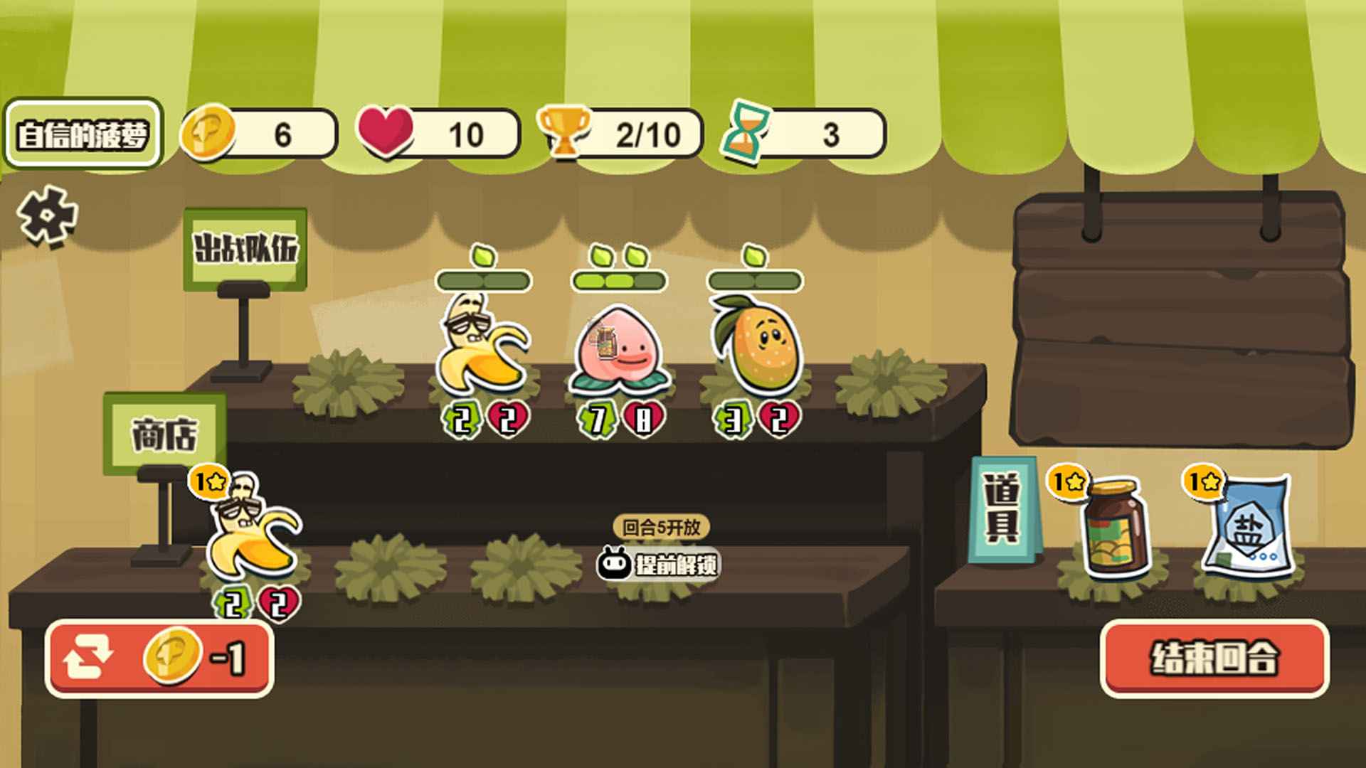 二.在游戏中你将使用不同的水果和蔬菜来击败敌人,通过购买不同的水果和蔬菜来构建你的阵容。
