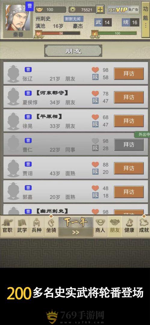 (四).三国人生2修改版特别的好玩,游戏内拥有超多的武将,我们可以在这里感受到世界的奇妙。我们也可以变成一个聪明的商人,赚取超多的钱财,过好自己的生活。