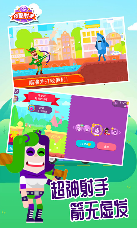(E).游戏特色身临其境的水平射击场景,手里握着三个箭头,每天都有一个快乐的宝箱;
