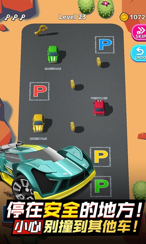 (C).在指定的位置上,玩家需要驾驶不同的汽车进入到停车位里面。