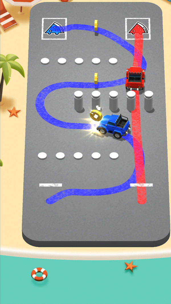 三.玩家需要通过绘制道路来解决停车问题。游戏中,你将面对各种拥堵和复杂的停车场场景,需要巧妙地绘制道路路径,引导汽车顺利进入停车位。
