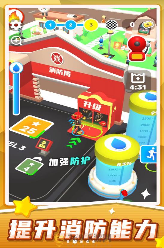 (1). 随着救援难度的增加,玩家需要学习更多的技能来驾驶消防车并快速灭火;