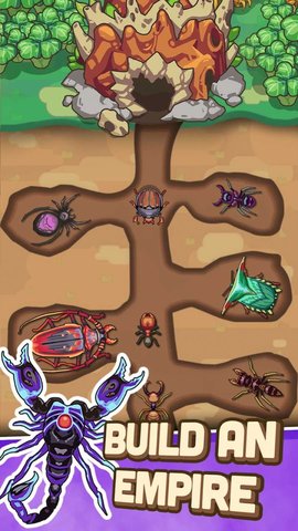 1.在这款游戏中作为蚂蚁的你需要通过自己的策略一步步扩大自己的领土打造一个自己的蚂蚁帝国。