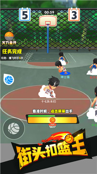 (A).你是否厌倦了市面上千篇一律的投篮机游戏?来试试街头扣篮王吧,首款全场3V3的休闲扣篮对决游戏,独创的一键操作,单手即可完成运球过人、精准投篮、华丽暴扣!